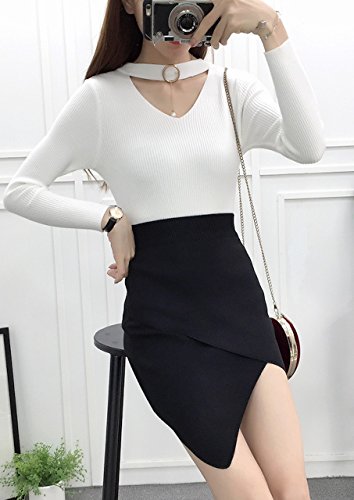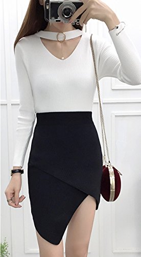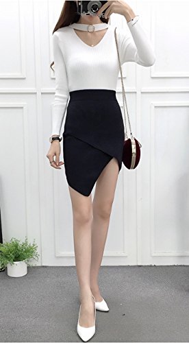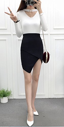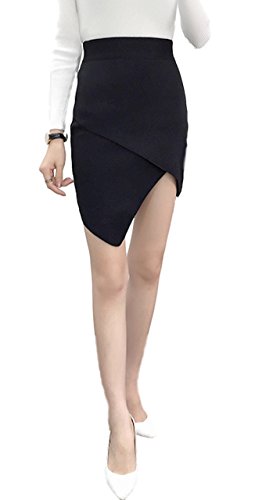 (シービリーヴ)SeBeliev アシメ ニットスカート タイトスカート ストレッチ エレガント 膝丈 通勤 オフィス 脚魅せ (ブラック)