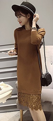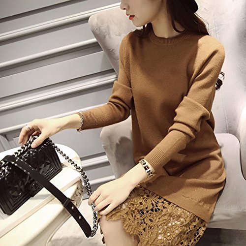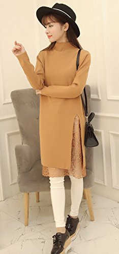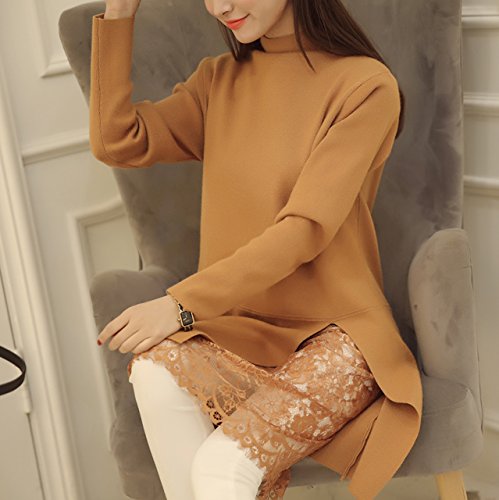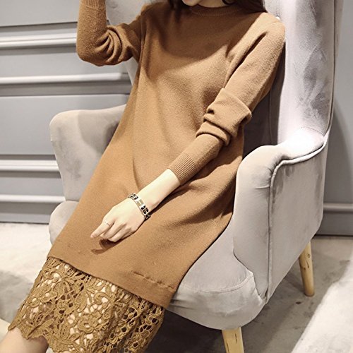 (シービリーヴ)SeBeliev ニット セーター 秋冬 大人 長袖 ワンピース レース 無地 ハイネック ひざ丈 タイト チュニック ワンピ 裾レース 膝丈 クルーネック 厚手 大きい キレイメ ロング フレア ロング丈 オシャレ 切り替え ユッタリ トップス セクシー シースルー ストライプ コドモ ハーフバック 結婚式 コスプレ ブラウス セーラー風 キャメル カーキ