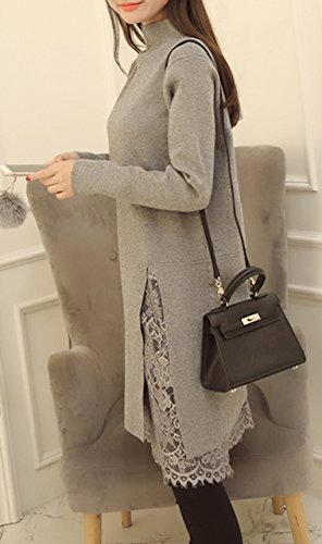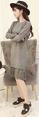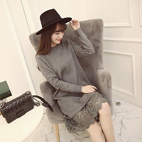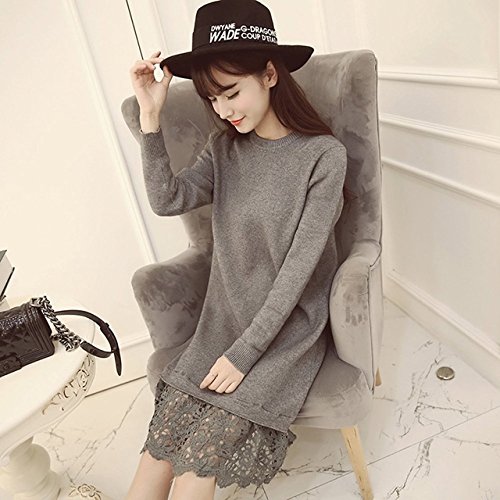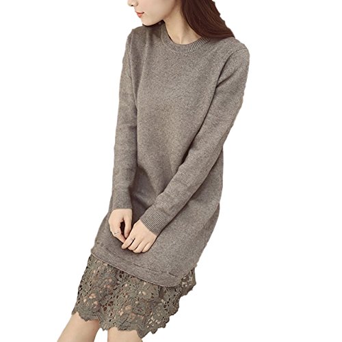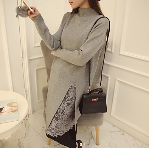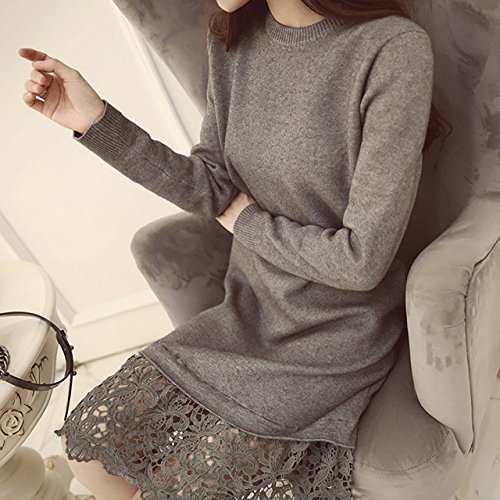 (シービリーヴ)SeBeliev ニット セーター 秋冬 大人 長袖 ワンピース レース 無地 ハイネック ひざ丈 タイト チュニック ワンピ 裾レース 膝丈 クルーネック 厚手 大きい キレイメ ロング フレア ロング丈 オシャレ 切り替え ユッタリ トップス セクシー シースルー ストライプ コドモ ハーフバック 結婚式 コスプレ ブラウス セーラー風 grey グレー 灰色?