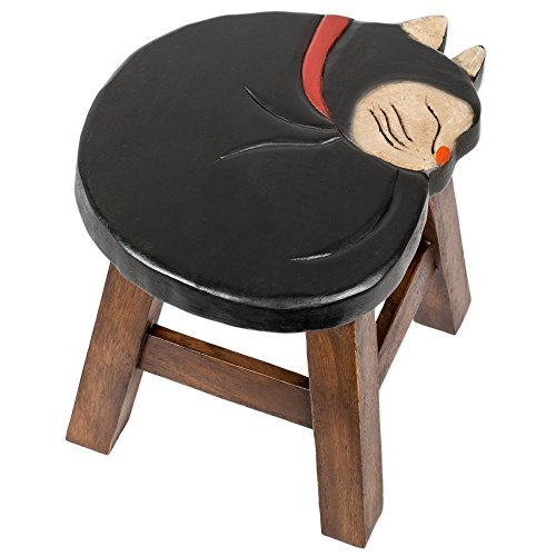 Tuxedo Cat Design Hand Carved Acacia Hardwood Decorative Short Stool [並行輸入品]