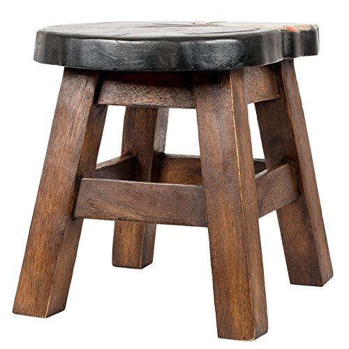 This stool is designed and handmade individually by skilled artisans. It is made of the highest quality acacia hardwood so it will last for years to come. It is hand carved and painted. It weighs 7 lbs and measures approximately 18 x 16 x 16 inches.