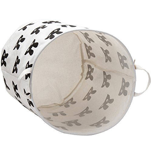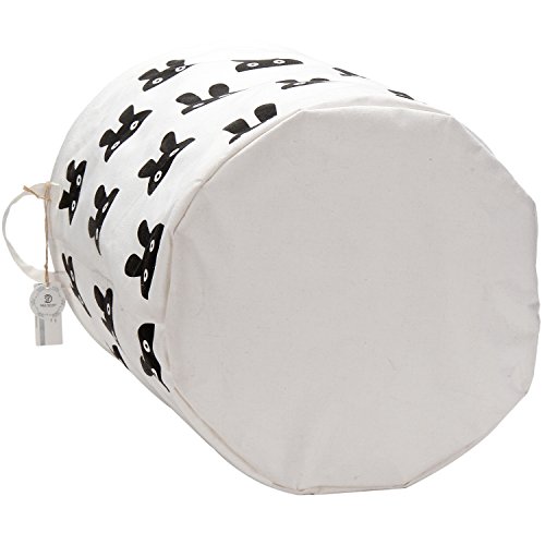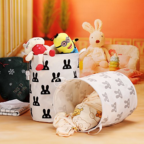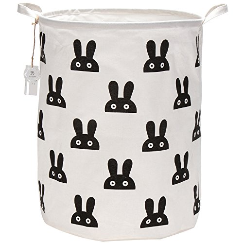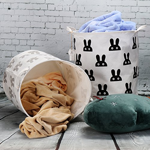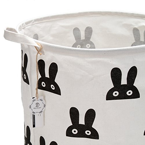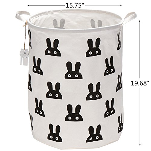 海チーム19.7?" Large Sized防水コーティングラミーコットン生地折りたたみランドリーHamperバケットCylindric黄麻布キャンバスストレージバスケットのキュートウサギデザイン ブラック Laundry Hamper Bunny Black