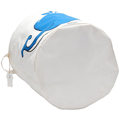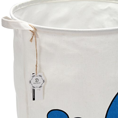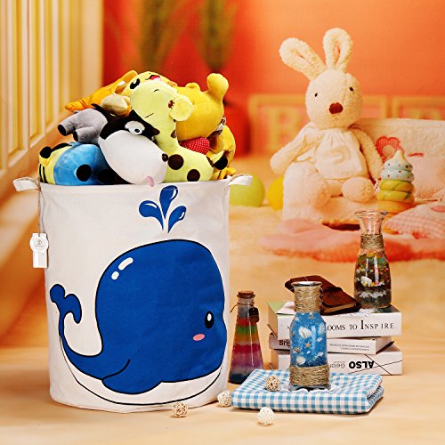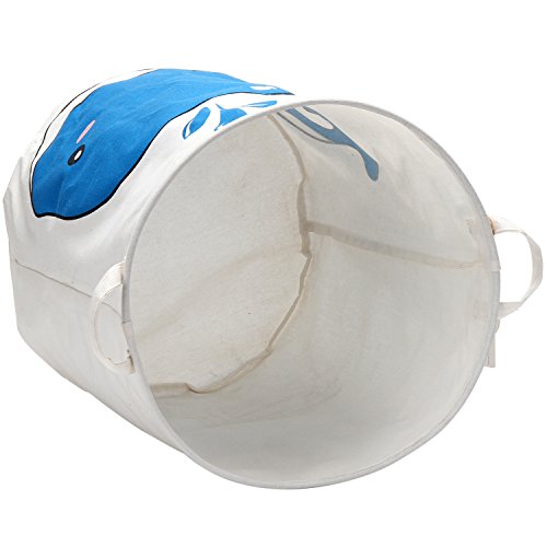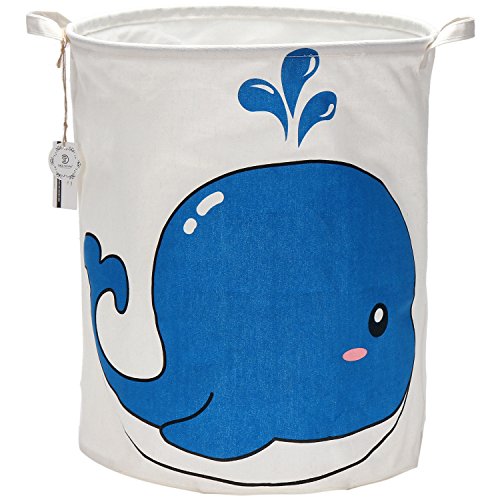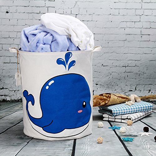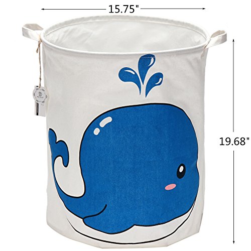 海チーム19.7 " Large Sized防水コーティングラミーコットン生地折りたたみランドリーHamperバケットCylindric黄麻布キャンバスストレージバスケットwith Cute Whaleデザイン ブルー Laundry Hamper 0224 Whale
