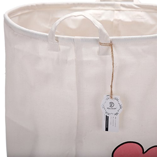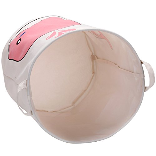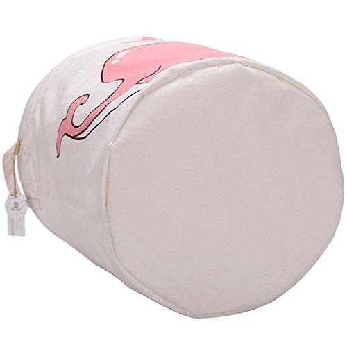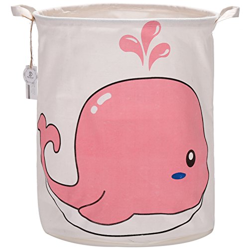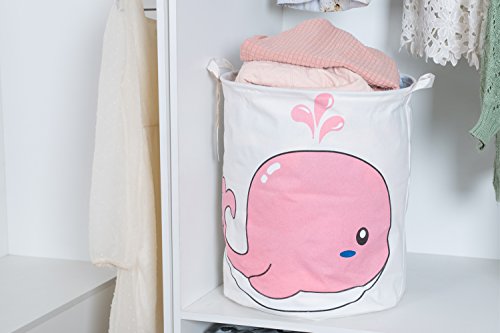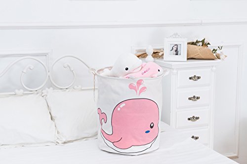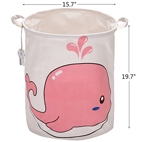 海チーム19.7 " Large Sized防水コーティングラミーコットン生地折りたたみランドリーHamperバケットCylindric黄麻布キャンバスストレージバスケットwith Cute Whaleデザイン ピンク Laundry Hamper Whale Pink