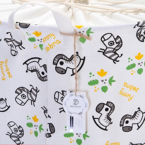 海チームFolding Cylindric防水コーティングキャンバスファブリック洗濯籠ストレージバスケットwith Drawstringカバー イエロー Laundry Hamper 0509 Zebra