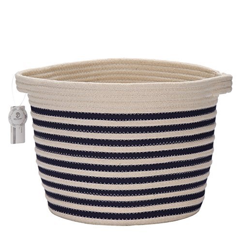 Sea Team 9 Natural Cotton Thread Woven Rope Storage Basket Bin Hamper with Handles for Nursery Kid's Room Storage (Navy Blue Stripe)