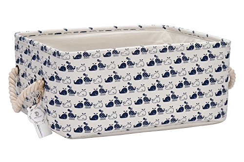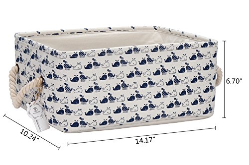海チーム折りたたみ式multi-sized Square新しい100 %天然リネン&コットンファブリックストレージビンストレージバスケットオーガナイザーwith Cute Whaleパターン M ホワイト Storage Basket Whale M