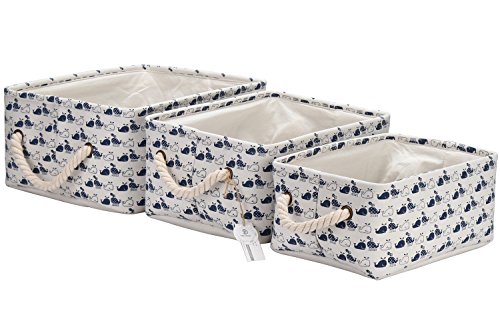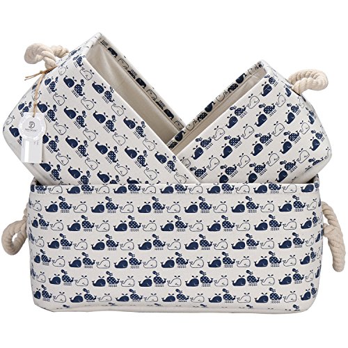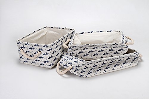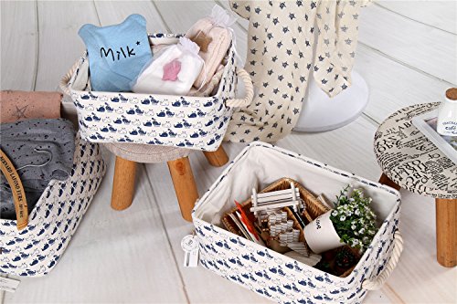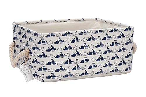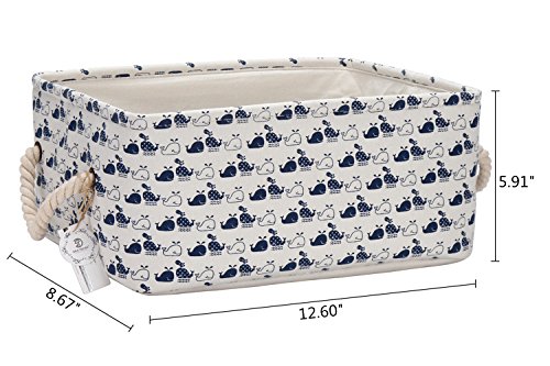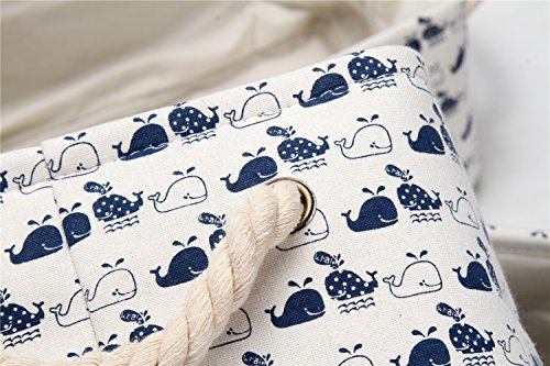 海チーム折りたたみ式multi-sized Square新しい100 %天然リネン&コットンファブリックストレージビンストレージバスケットオーガナイザーwith Cute Whaleパターン S ホワイト Storage Basket Whale S