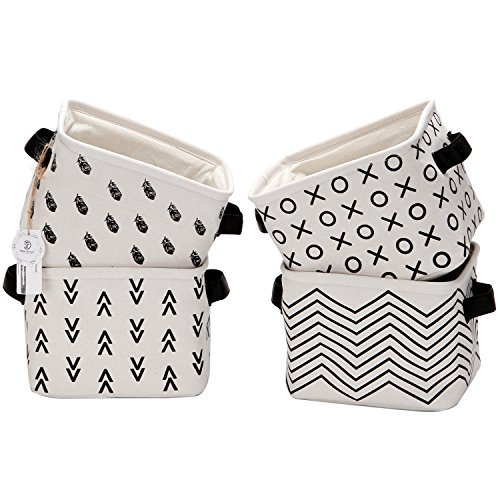 海チームFoldable Mini Square新しいブラックandホワイトテーマナチュラルリネン&コットンファブリックストレージビンシンプルデスクシェルフバスケットオーガナイザー – 4のセット
