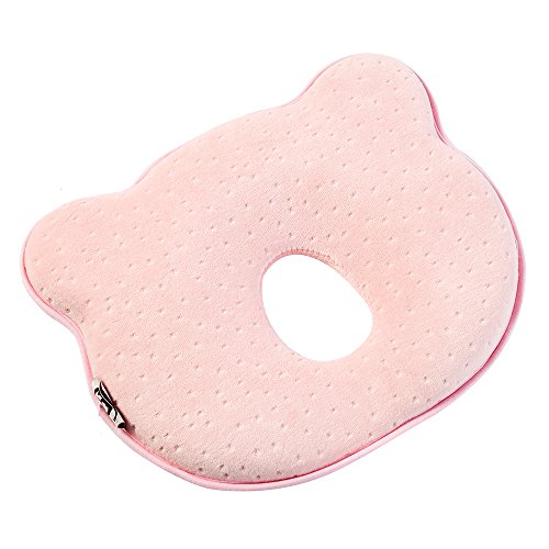 Seacan ベビー枕 赤ちゃん枕 絶壁防止 頭の形を守る 汗とり 快眠 寝ハゲ対策 低反発ピロー 通気まくら 洗える ベビーの肌に優しい 小熊型 (ピンク)