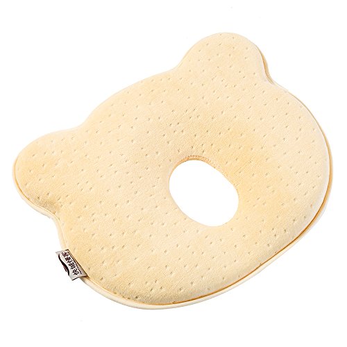Seacan ベビー枕 赤ちゃん枕 絶壁防止 頭の形を守る 汗とり 快眠 寝ハゲ対策 低反発ピロー 通気まくら 洗える ベビーの肌に優しい 小熊型 (イエロー)