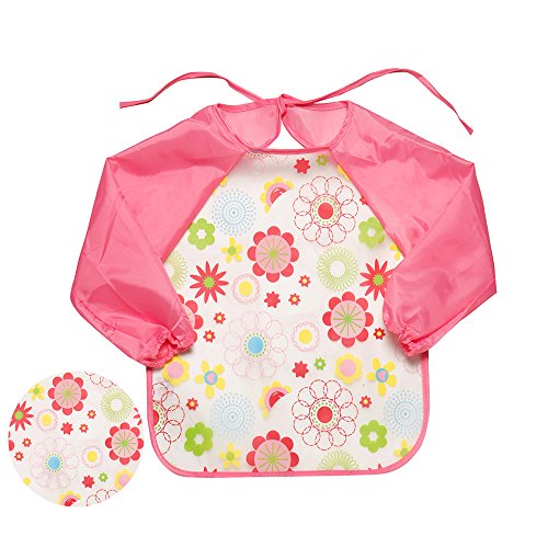 Seacan ベビー 幼児 お食事用 長袖 防水 エプロン かわいい柄 子供スタイ ビブ 保育園 ロングスリーブ 薄手 お着替え (ガーベラ)