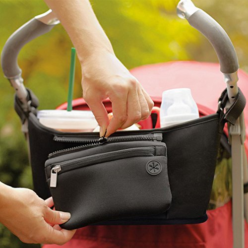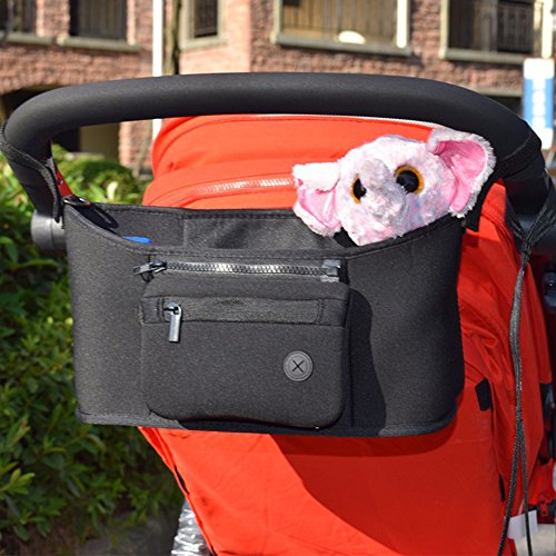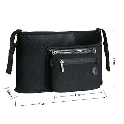 Seacan ベビーカー用バッグ 多機能小物入れ ドリンク ボトル ホルダー ジッパーポケット ティッシュポーチ付き 取り付け簡単 スマホや財布が収納でき 収納ケース