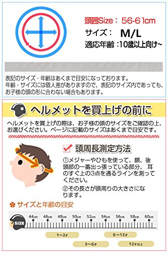 - 頭囲:56-61cm約(10歳以上におすすめ) (※商品によっては数値に若干の誤差が生じる場合がございます。 ※年齢は参考だけで、頭囲をご確認してから、ご注文ください。)