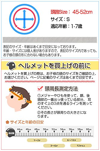- 頭囲:45-52cm約(1歳~7歳におすすめ) (※商品によっては数値に若干の誤差が生じる場合がございます。 ※年齢は参考だけで、頭囲をご確認してから、ご注文ください。)