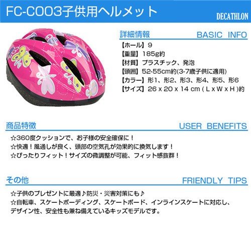 - 頭囲:約52-55cm(3-7歳子供に適用)