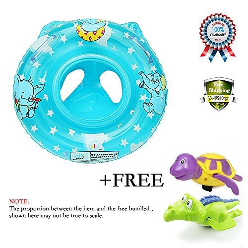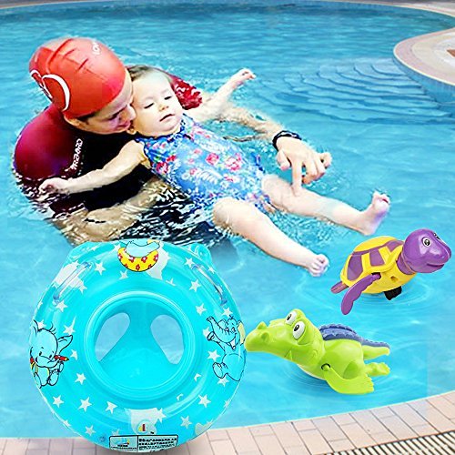 Sealive Blue/Pink Popular Kids Inflatable Safety Seat Pool Float Swimming Toy With Handle,Puls Bathtub Toys Turtle and crocodile Wind up Water Toy (Blue)
