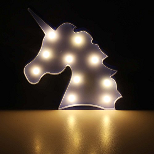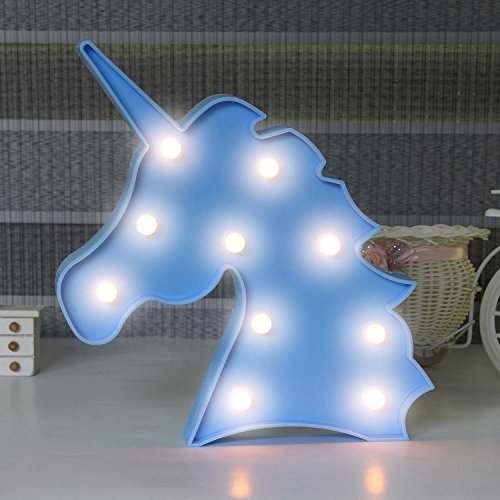 ユニコーンブルーLEDライトナイトライト夜ランプマーキーのサインテーブルランプ壁装飾寝室子供リビングルーム子供プレゼントクリスマスギフト電池式by Oye Hoye