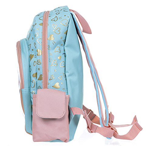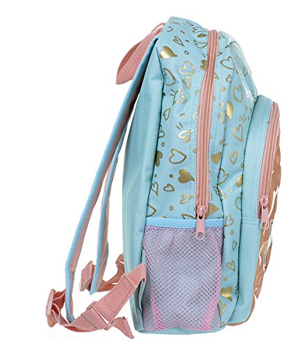 このミントとゴールド・ラブハートパターンのピーチのようなバックパックはあなたの子供の冒険は学校に戻るのか、または一緒に友人。