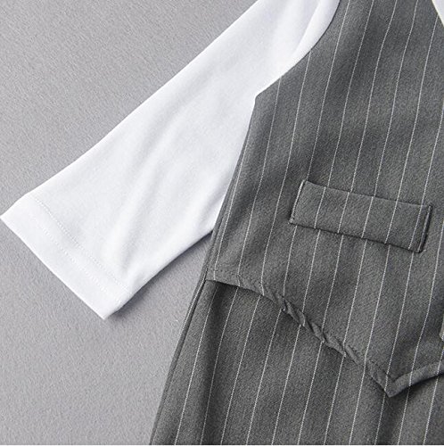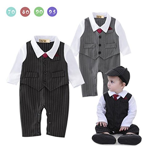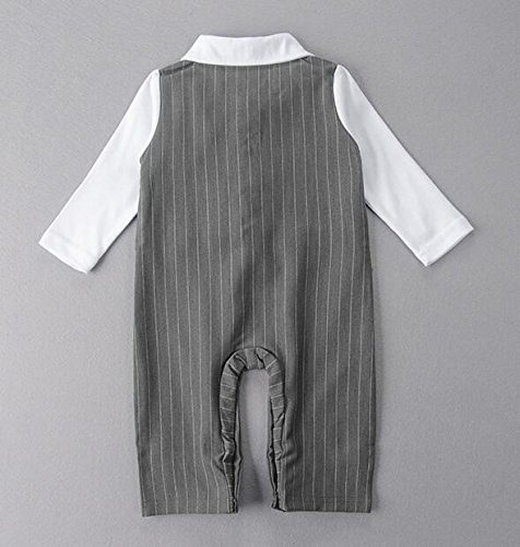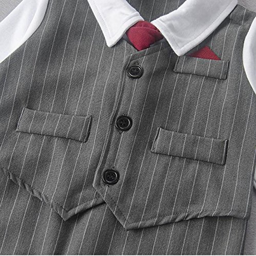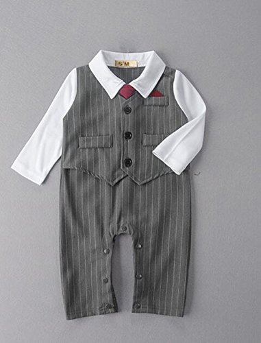 S'M(エスエム) ベビーフォーマルロンパースカバーオール白いシャツベスト模様紳士風洋服 グレー紺 長袖70cm~95cm (80cm, グレー)