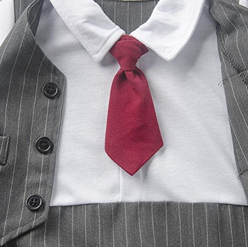 S'M(エスエム) ベビーフォーマルロンパースカバーオール白いシャツベスト模様紳士風洋服 グレー紺 長袖70cm~95cm (70cm, グレー)
