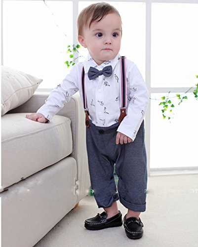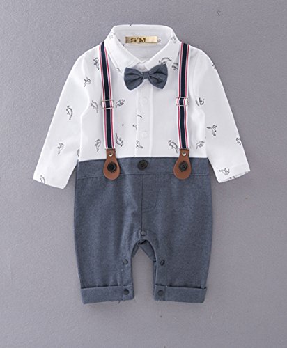 S'M(エスエム) ベビー服フォーマルロンパース男の子カバーオール白いシャツ紳士風洋服 長袖春 イベント 70cm~95cm (95cm, ホワイト)