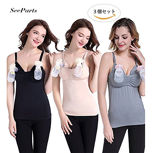 ハンズフリーな搾乳機能付ブラジャー オフホワイト ★防腐剤フリーの割れ乳首用ニップルクリーム(ラノリン配合)をプレゼント SPU-002 (XXL:40(CD) 42(ABCD), 3個 セット(グレー、ブラック、ベージュ))