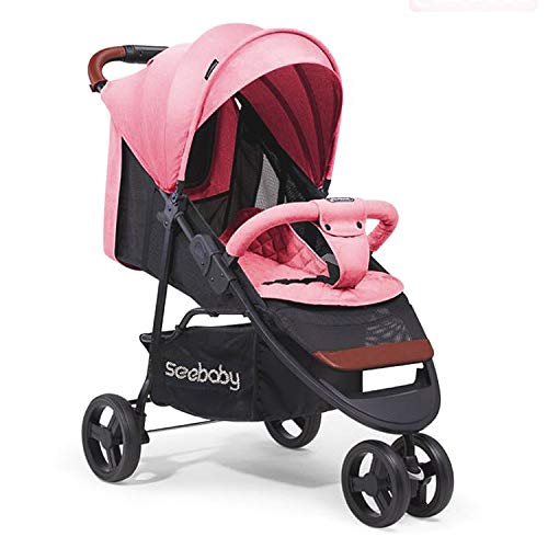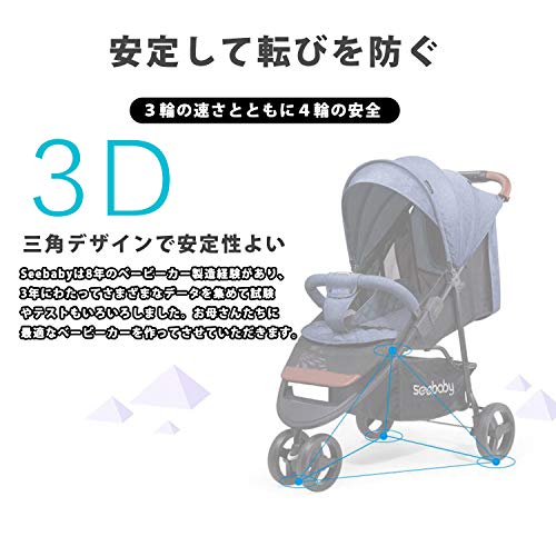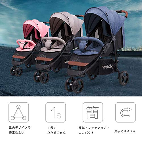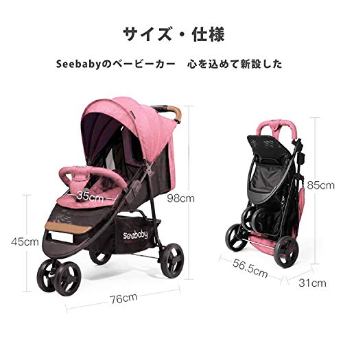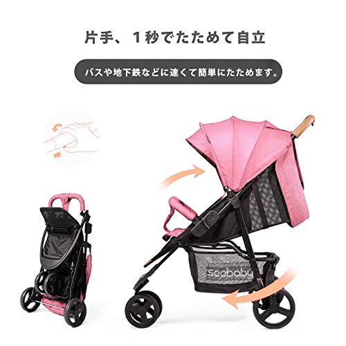 【2018特化版】 ベービーカー Seebaby 3輪 【史上一番安定性良し】 耐衝撃 コンパクト 3歳まで 片手で1秒たためる (ピンク)