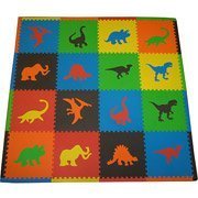 Puzzle playmat set includes 16 large, interlocking foam pieces with different removable dinosaur centers and 16 border pieces;Bright, contrasting colors ~ Can be taken apart for easier storage;Foam play mat for kids forms a soft and durable play area that protects against bumps;Made of EVA foam ~ Easy to clean;Overall dimensions: 50L x 50W x 0.4H