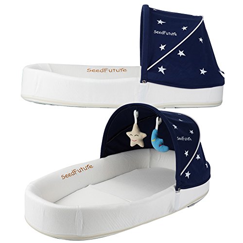 赤ちゃん 幼児 ベビーベッド マットレス バシネット 旅行 ベッドサイド ベッドインベッド 添い寝ベッド 新生児 折りたたみ (ブルー, 95cm)