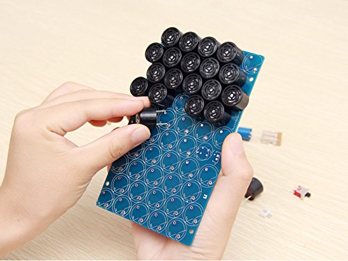 This product is a speaker kit which has a sharp directivity by using ultrasound. It sends a sound only straight. It has many wave transmitters. Please note that you need to solder many points for assembling it.