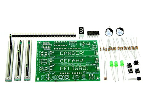 The Danger Shield is an add-on for the [Arduino] micro controller board. It contains a variety of fun and useful electronic circuits that you can use to do fun and useful things. It is a fully self-contained shield. You plug it into your Arduino, and you can immediately start using it. No extra things to hook up, no external components. Just a really rad board ready to rock.?