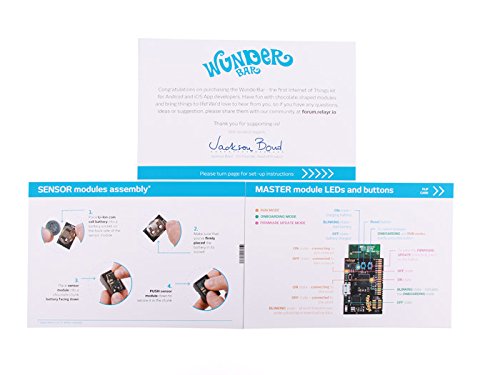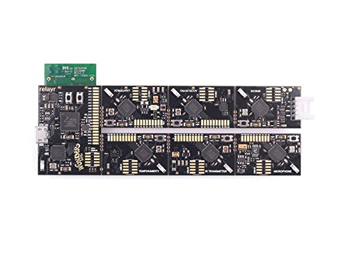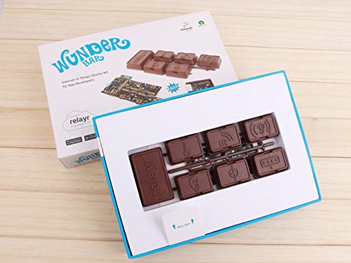 The WunderBar IoT Starter Kit from relayr mimics the appearance of a chocolate bar with a WiFi enabled master module, plus six detachable smart sensor mini-modules. Each module has Bluetooth Low Energy (BLE), a sensor or actuator, and an on-board battery. The mini-modules provide functionality including light, color, distance, noise, temperature and humidity sensing, plus an accelerometer, a gyroscope and infra-red (IR) remote control capability. The Starter Kit has available for download various software development kits (SDKs) for iOS, Android and Node.js. including test Apps which can be downloaded from relayr.io