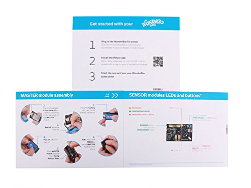The WunderBar Internet of Things WiFi & Bluetooth Sensor Starter Kit is a quick start development tool for Software Application Developers unfamiliar with complex wireless hardware designing, and a complete open-source wireless hardware reference design that enables Hardware Design Engineers with a out-of-the-box development tool that helps users get started quickly building, inventing, developing, and experimenting with Internet of Things senor based designs using WiFi and BLE senor applications.