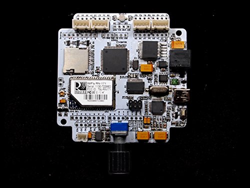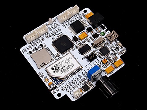 It's Arduino compatible and incorporates onboard Wi-fi connectivity, MP3 player and SD storage. It also features an audio amplifier, volume potentiometer and solder less connectors compatible with SEEED Studio Grove series. Its form factor is compatible with most Arduino shields.