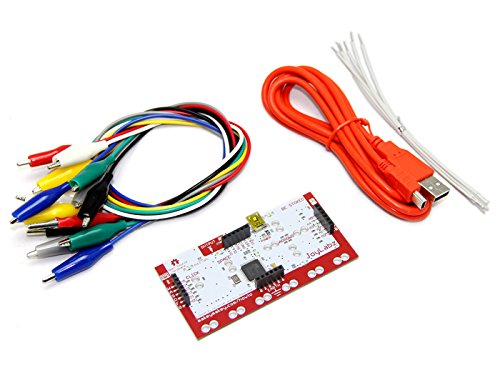It comes ready to use out of the box with everything you see above: MaKey MaKey, Alligator Clips, USB Cable.