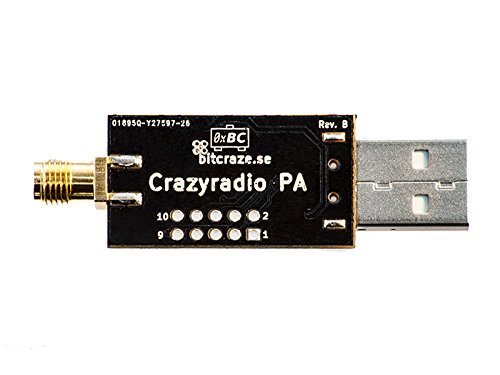 crazyradio paは北欧の半導体からnrf24lu1に基づいて長距離usb無線ドングルを開いた。それは20のパワーアンプの特徴となる、crazyflie互換のファームウェアでプログラムされた。パワーアンプの範囲を押し上げて、北欧の半導体からnrf24lu1チップに基づく