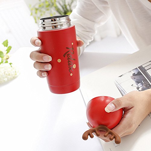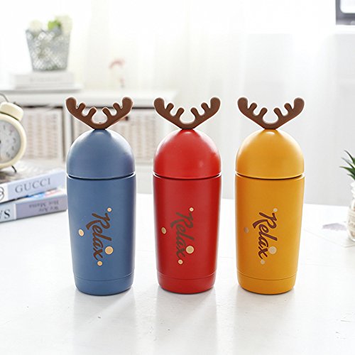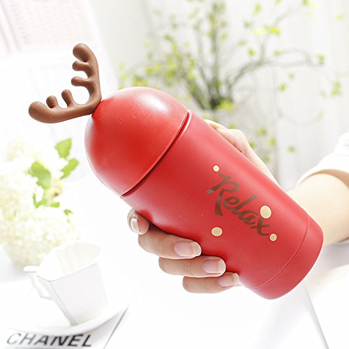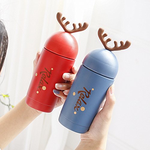 Seeshine 子ども用コップ マグボトル マグカップ 鹿の角 水筒 ステンレス鋼 真空断熱 保温 マグカップ 保温瓶 魔法瓶 260ml (レッド)