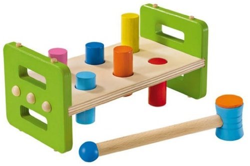 Age: from 1 Y;Contents: 1 pegboard with 6 pegs, 1 hammer;Size: 8? x 4? x 4 in.;Made in Germany