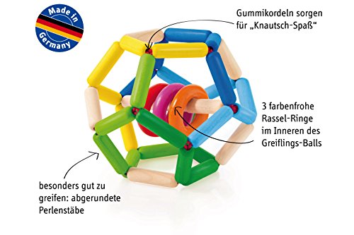 指に引っかかりやすく、動きがおもしろい。転がる・投げる・つぶす、など楽しい動作がたくさんできる、ベビーのためのボールです。
