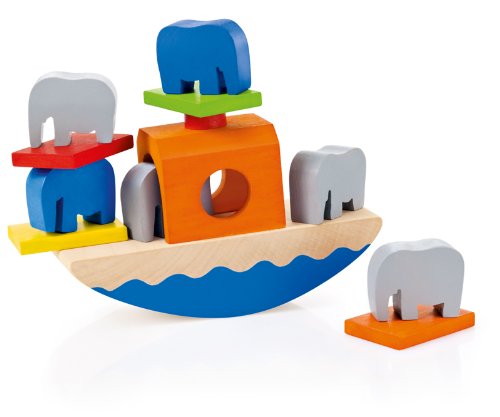 ゆらゆら揺れる船の上に、ぞうさんを乗せていきます。うまくバランスを取りながら乗せないと船から落ちてしまいます。