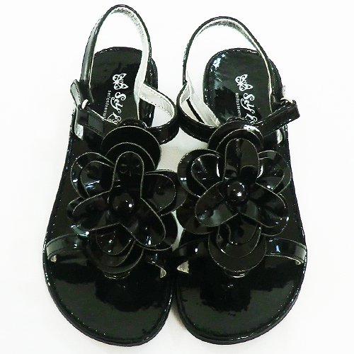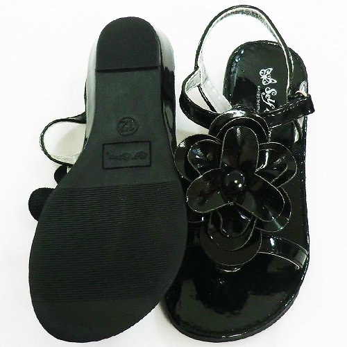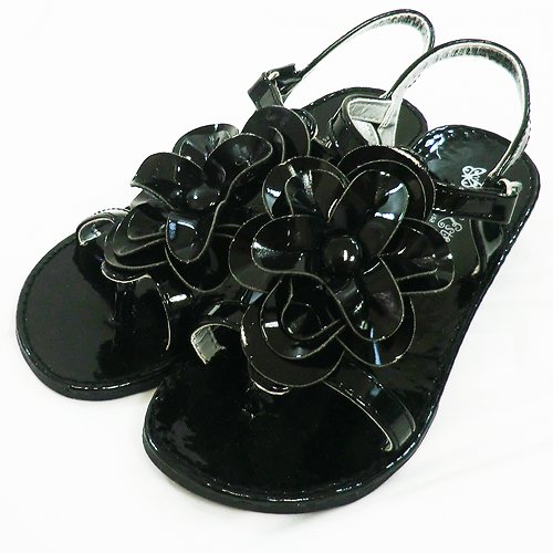 【アメリカ買付商品】Self Esteem,セルフエスティーム きらきらサンダル ブラック お花のモチーフがキュート☆ お出掛けがますます楽しくなりますね☆ 足首部分マジックテープ式で脱ぎ履き楽チン☆ ※専用のお箱はございません。 サイズ:11=17cm 12=17.5cm 13=18.5cm 1=19cm カラー:ブラック 素材:合成皮革 仕入国:アメリカ 生産国:中国