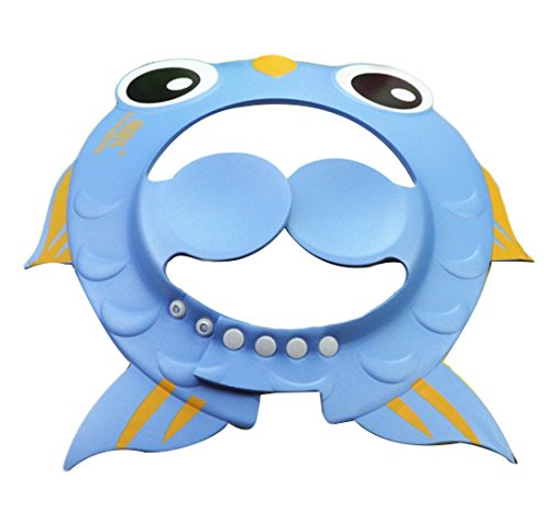 Seliyi ベビー シャンプーハット シャワー用防水帽 バスグッズ 赤ちゃん入浴用品 キッズ 子ども 幼児 可愛い 金魚型 耳あて付 シャンプー 保護 洗髪ハット ブルー