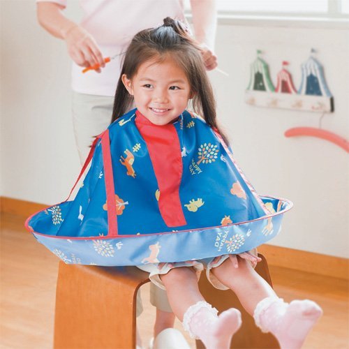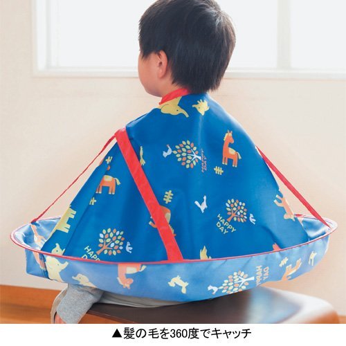 「散髪マントアニマル」は、お子さまの小さなからだにぴったりな散髪ケープです。すそが持ち上がり、カットした髪がたまる構造。首まわりは面ファスナーでサイズ調整が可能です。