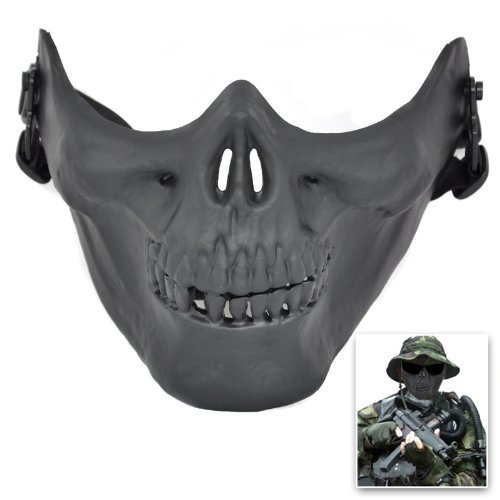 Seliyi マスク,SODIAL(R)エアソフトマスクスカル スケルトン エアガンペイントボールハーフフェイス 保護エアガンマスク(黒)
