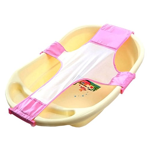 Seliyi ベビーコットン調整可能なバス座席バスタブ幼児シャワーネットお風呂サポート (ピンク)