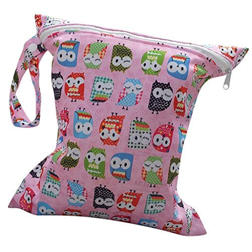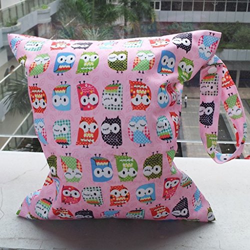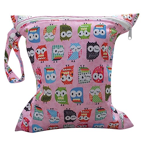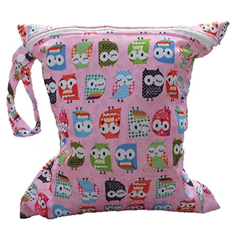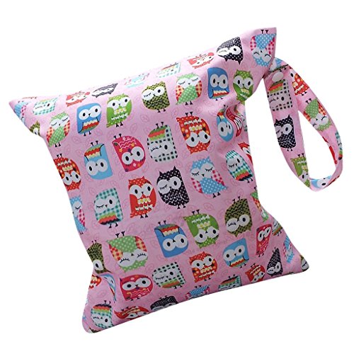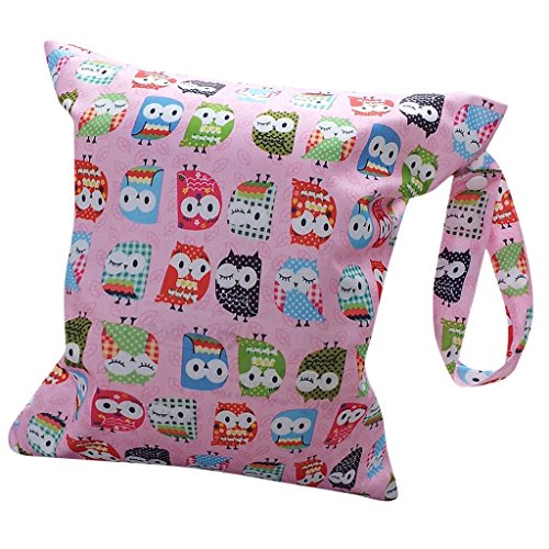 Seliyi 防水 ジッパー式 マザーズバッグ おむつバッグ フクロウ柄 (ピンク)