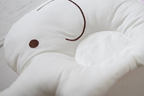 サイズ:30*20cm まるっこいぞうさんのかたちがなんともかわいい! 真ん中のまるいくぼみが赤ちゃんの頭を安定させ、まだ寝返りのうてない新生児から頭の位置を安定させます。 ぬいぐるみのようなぞうさん型なので、ベビーベッドや寝具まわりに、置いておくだけでかわいらしいベビーインテリアにも。