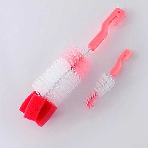 Seliyi ミルク瓶ブラシ ニップルブラシ カップクリーナー プラスチック ナイロン ピンク (ピンク)