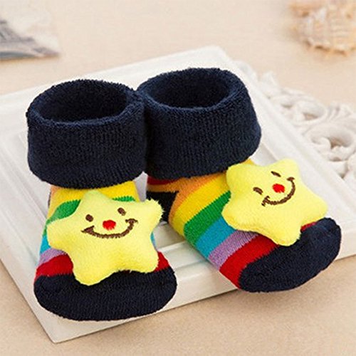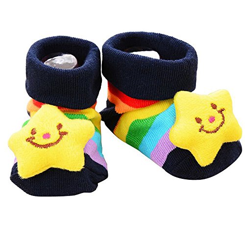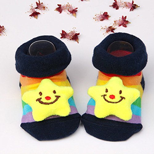 Seliyi ソックス 赤ちゃんの可愛い3Dカートゥーンノンスリップアンチスリップスリッパ ソックス スリッパ シューズ ブーツ 3Dブーティーソックス 0-12ヶ月の新生児の為(星